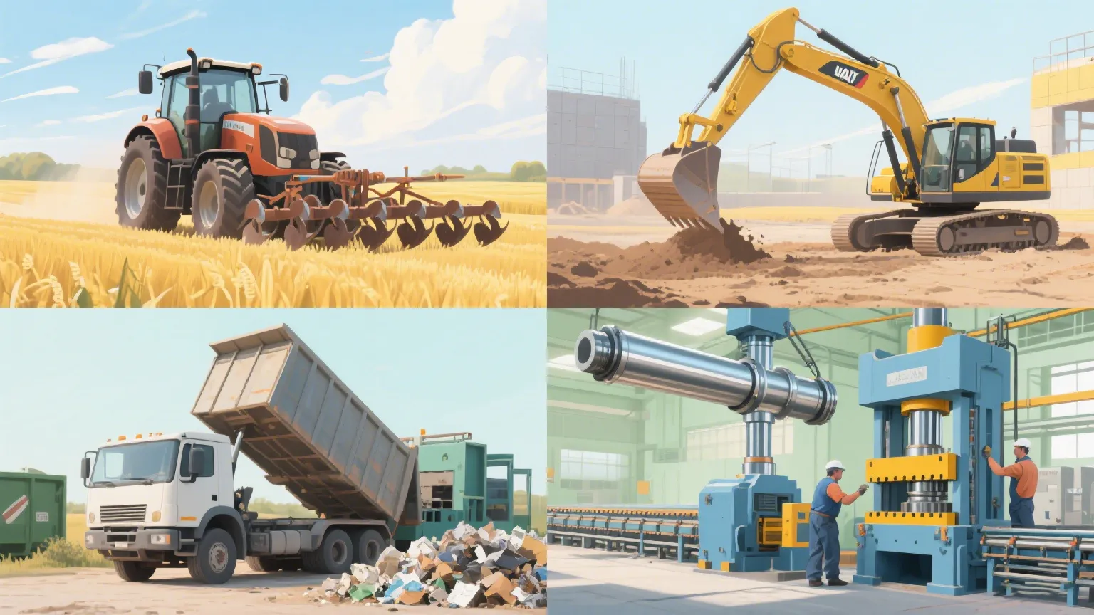 निर्माण स्थलों पर, यह पृथ्वी को हिलाने के पीछे की शक्ति है। बैकहो लोडर और टेलीहैंडलर बूम, डिपर और बाल्टी को चलाने के लिए इस पर भरोसा करते हैं - वे हिस्से जो वास्तविक खुदाई और उठाने का काम करते हैं। कठोर ज़मीन को तोड़ने की ज़रूरत है? यह उस महत्वपूर्ण ब्रेकआउट बल के लिए शक्ति प्रदान करता है। भारी सामान ढोना? यह हर चीज़ को स्थिर और सुरक्षित रखता है। उन कार्यस्थलों के लिए जहां आप ब्रेकडाउन का जोखिम नहीं उठा सकते, यह भारी मशीनरी हाइड्रोलिक लिफ्ट सिलेंडर एक आसान काम है।