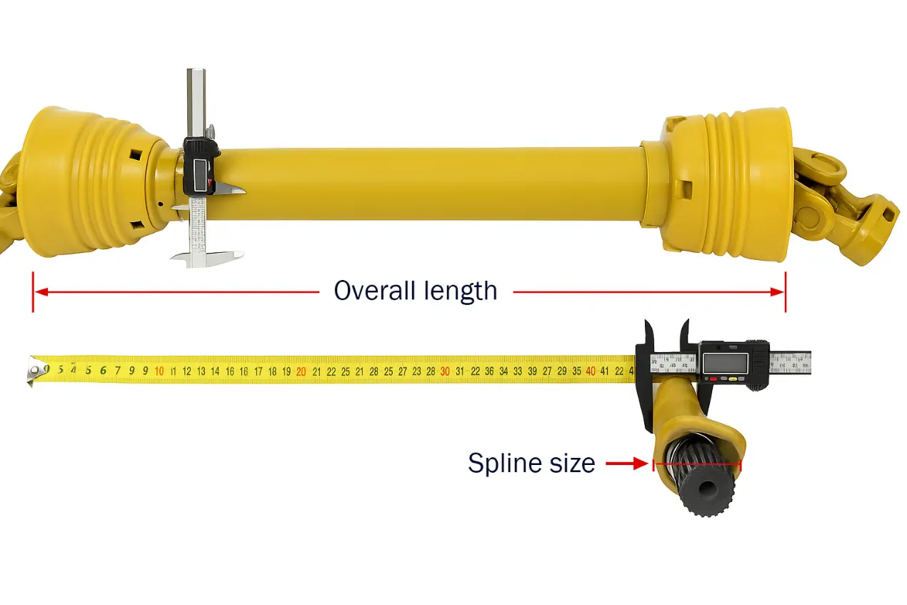 पुष्टि करने वाली पहली चीज़ ड्राइव शाफ्ट की कुल लंबाई है। यह लंबाई पीछे हटने की स्थिति में पीटीओ शाफ्ट के अंत से अंत तक की दूरी को संदर्भित करती है, अर्थात, सुरक्षात्मक आवरण को छोड़कर, एक कांटे के बाहरी किनारे से दूसरे कांटे के बाहरी किनारे तक। कई उपयोगकर्ता केवल म्यान की लंबाई मापते हैं, जो गलत है।