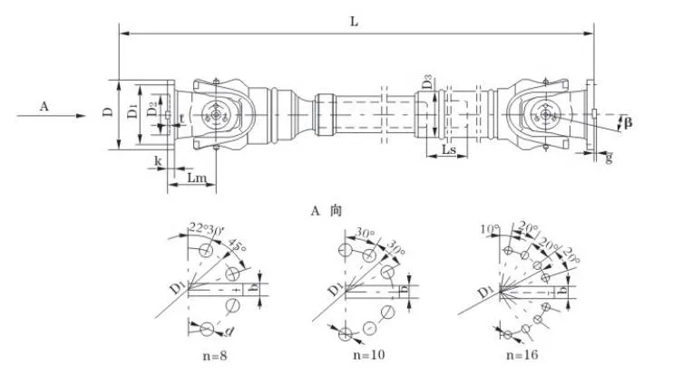 | नहीं। | परिभ्रमण व्यास डी मिमी | नाममात्र टॉर्क टीएन केएन·एम | अक्ष मोड़ कोण β (°) | थका हुआ टॉर्क टीएफ केएन·एम | फ्लेक्स मात्रा एलएस मिमी | आकार (मिमी) | घूर्णनशील जड़ता kg.m2 | वजन (किलो) | |||||||||||